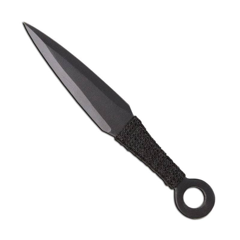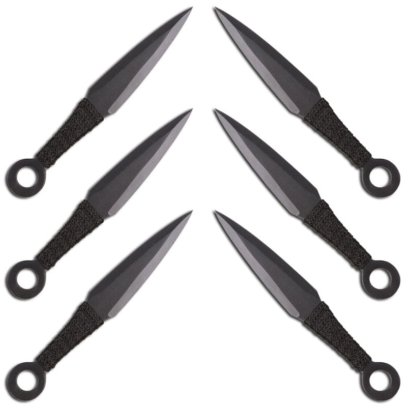 Each of the black kunai knives are crafted out of stainless steel and measure 6.5" long. They are extremely lightweight at approximately 1 oz. per kunai. Each kunai is full tang and has cord wrapped handles. You also get a nylon carrying case for easy and safe carrying.