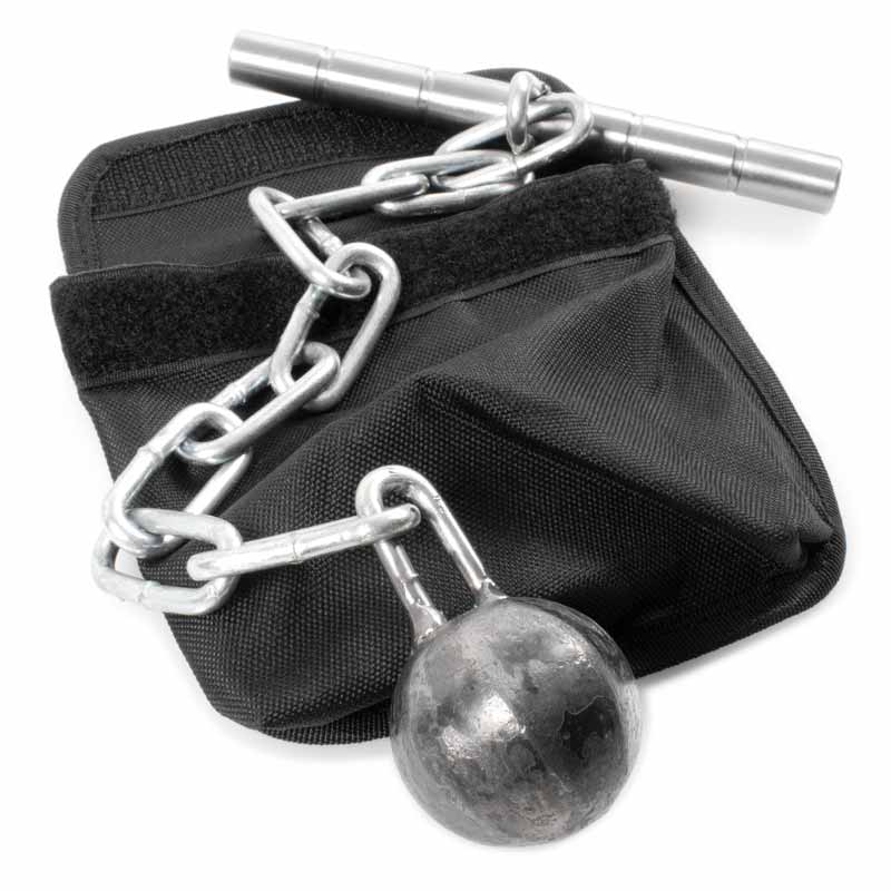 The main modification on the Combat Fist Flail that differentiates it from other chain weapons is its fist handle. Unlike the chain flails of old, this 14" steel chain on this chain mace weapon is attached to the center of its approximately 6" handle, enhancing its combat capabilities and ease of use. By gripping the machined steel handle with the chain between your fingers, the power to crush and hammer with your ball and chain is now in the palm of your hands. With enough momentum, you can use the solid steel ball, which is crafted from a one piece of steel, to pummel through your targets!