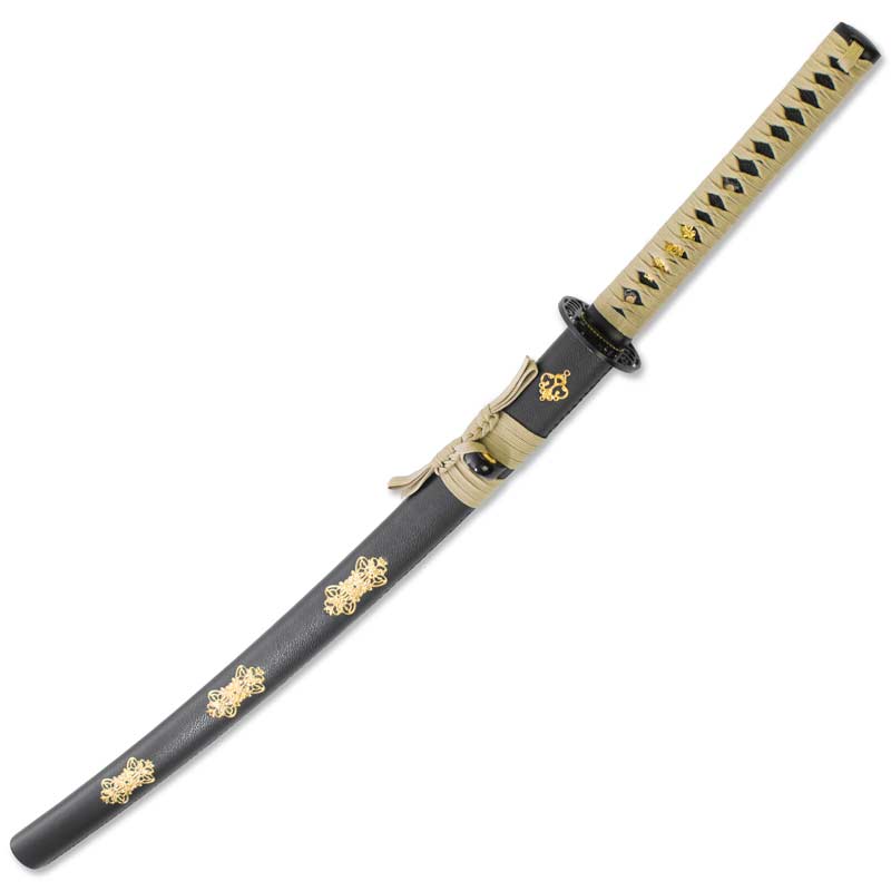 Whether you wear this black and gold katana for ceremonial purposes, or if you are slicing through whatever crosses your path, you'll be pleased with the black swirling metal handguard, the securly wrapped handle, and the pointed tip of these imperial swords. Good thing the emperor has you on their side, or they may regret training you in the way of the sword and giving you this high carbon steel weapon.