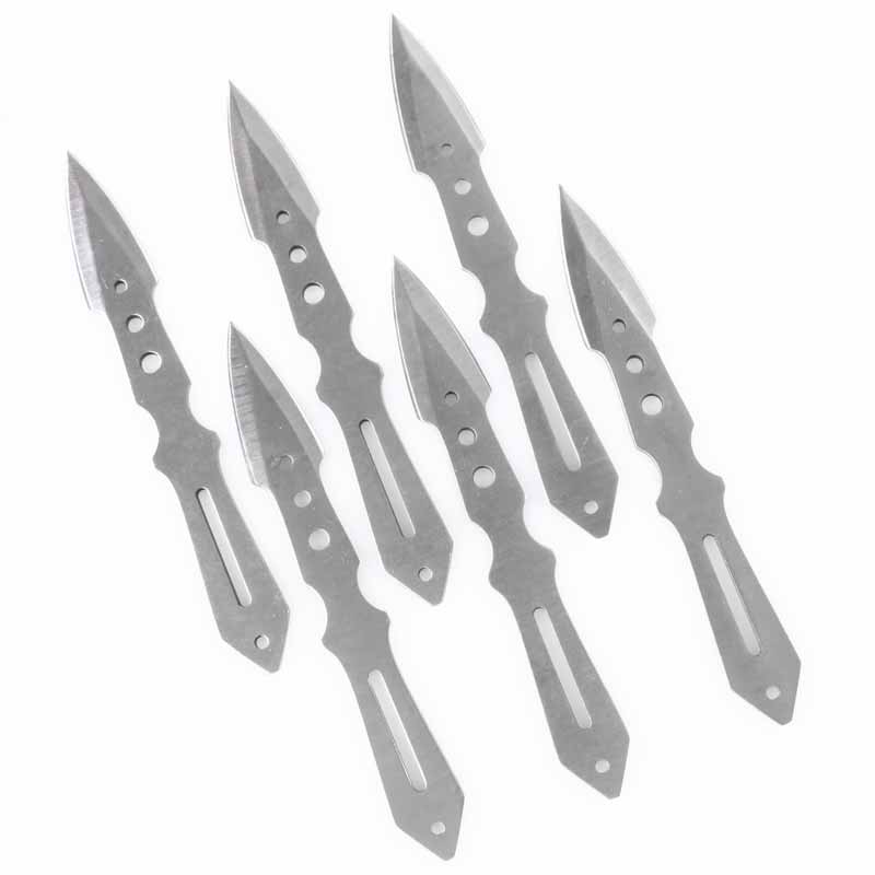 Each of the throwing knives in the 6-Piece Kunai set weigh approximately 1.1 ounce each and are made out of 440 stainless steel. They each have an approximate 5.5 inch length and an approximate 1 inch width, making them easy to carry on your person! Each one also has vent holes along its length for better balance. For easy carrying and concealment, this set also includes a nylon carrying case with a belt strap!