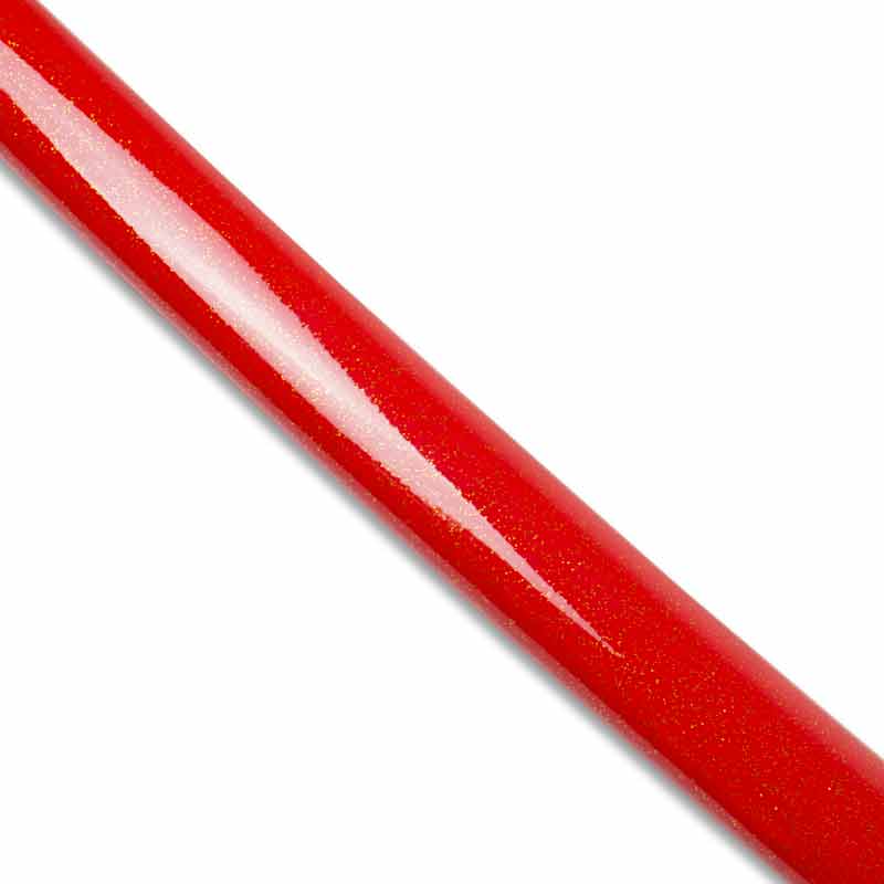 The detail continues into the wooden saya, or scabbard, that houses and protects the high carbon steel blade. With a perfect fit, this casing slides up snug against the tsuba to provide as much distance between the blade and the elements as possible. When on display, you'll see that the glossy red of the scabbard has small gold glitter throughout, enough to catch a passing eye but not enough to be distracting. This gives the scabbard a glow, also from the bright red, to you and anyone who visits your home will know that this weapon is honorable. And once they see you demonstrate the way of the sword, your audience will offer respect as well.