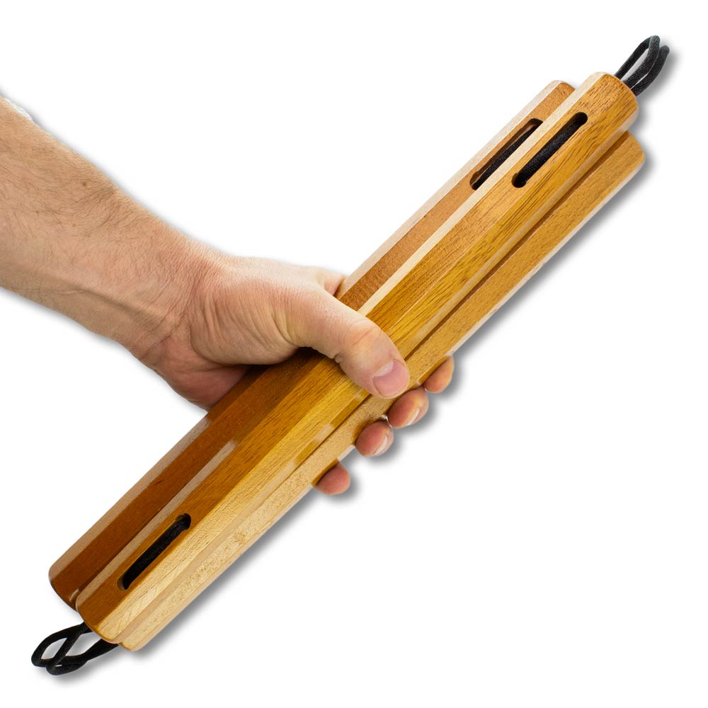 You can use this mini three section staff to make spinning attacks, like with a bo, you can use the weapon like a whip, or even wrap it around your opponent's neck and choke them. The most impressive thing you can do with this Okinawan sanbon nunchaku is simultaneously block an opponent's attack, trap their weapon, and disarm them while you strike with the free side of the staff. That's what people like to call an "impressive turnaround."