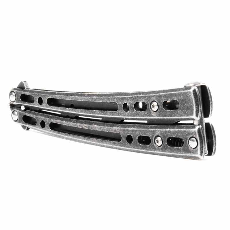 Are you a bit rough on your equipment? Do you hate smudge marks on polished surfaces? Have you been dreaming of flipping a butterfly knife around without getting stung? Then the Vented Butterfly Training Knife is here and ready for you to take home!
