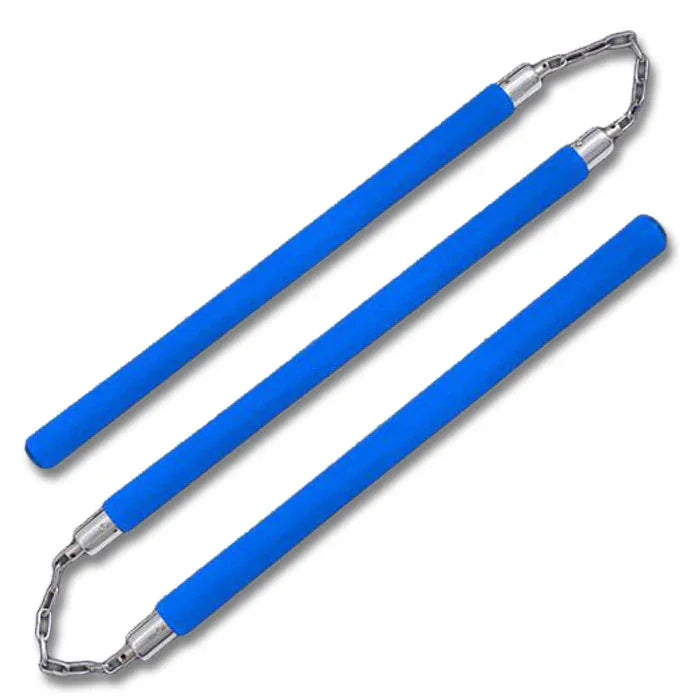 Our Youth Foam Three-Section Staff consists of three 23" sections connected by two 5.5" stainless steel chains. Each section has a hollow PVC core; This material is lightweight, durable, and perfect for training weapons. The red or blue foam rubber covering makes sparring safer by absorbing much of the shock from impact and reducing the risk of injury.